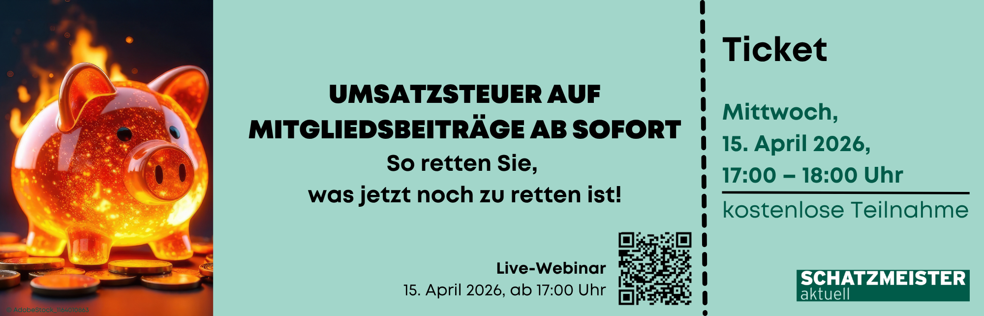 Dieses Wissen bekommen Sie im Sonder-Webinar „Umsatzsteuer auf Mitgliedsbeiträge ab sofort: So retten Sie, was jetzt noch zu retten ist!“ ist. Konkret. Verständlich. Und mit dem klaren Ziel, dass Sie nach dem Webinar wissen, was Sie in Ihrem Verein sofort anpacken müssen, um Ihre Finanzen zu retten.